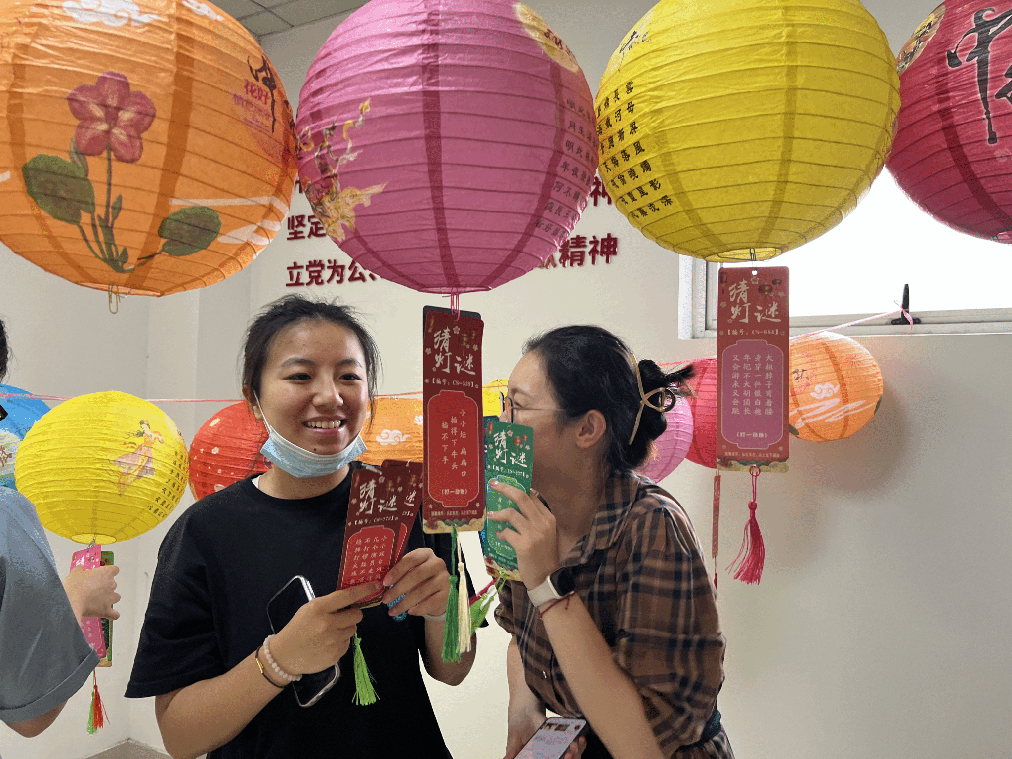 活動現場,院工會將精心準備的近二百條燈謎掛滿了整個樓道,燈謎的內容主要涉及中國傳統文化、現代經濟生活、社會主義核心價值觀等相關的內容,每一個謎面都韻味深藏、精彩絕倫。傳統的、現代的、娛樂的、人文的、天文地理的、古今中外的,吸引了眾多教職工駐足思考。