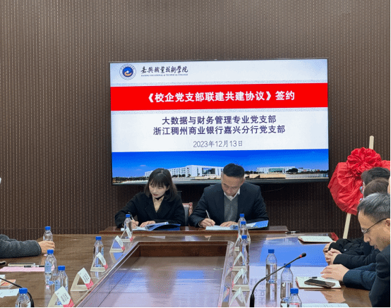 聯(lián)建儀式的第二環(huán)節(jié)是由大數(shù)據(jù)與財(cái)務(wù)管理專業(yè)黨支部書記彭貴芝、浙江稠州商業(yè)銀行嘉興分行黨支部書記張軍波上臺進(jìn)行《校企黨支部聯(lián)建共建協(xié)議》簽約儀式。以習(xí)近平新時(shí)代中國特色社會主義思想為指導(dǎo),為進(jìn)一步發(fā)揮在各自領(lǐng)域內(nèi)的專業(yè)能力和資源,雙方同意通過黨支部聯(lián)建的形式,加強(qiáng)交流合作,共同促進(jìn)黨建工作的發(fā)展,并以此為契機(jī),推動(dòng)雙方業(yè)務(wù)領(lǐng)域的合作與發(fā)展。