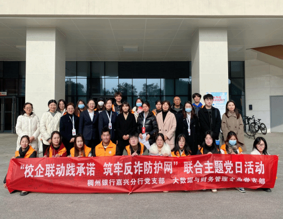 為充分發揮黨建引領優勢,深化校企協同育人作用,提高青年大學生反詐防詐意識和能力,12月13日中午,大數據與財務管理專業黨支部攜手浙江稠州商業銀行嘉興分行黨支部在學生生活區共同舉行“校企聯動踐承諾,筑牢反詐防護網”主題黨日活動。