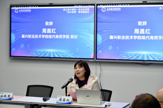復盤會由嘉興職業(yè)技術學院大數據與財務管理專業(yè)主任汝曉琴主持。會議伊始,嘉興職業(yè)技術學院現(xiàn)代商貿學院周昌紅院長致歡迎辭,對與會嘉賓表示熱烈歡迎,并強調了賽教融合對財務會計類專業(yè)人才培養(yǎng)的重要意義。