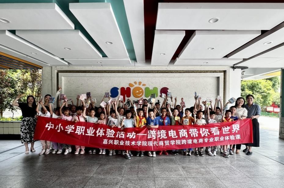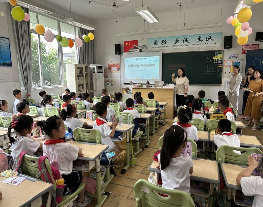 6月8日,現代商貿學院跨境電子商務專業葉丹丹、徐娟娟、朱思奇、胡佳煒、孫曉霞、鄒其君六位老師組團到上海外國語大學秀洲外國語學校、秀洲實驗小學等五所小學,為近200名小學生們帶去了五場豐富多彩的跨境電子商務職業體驗課。