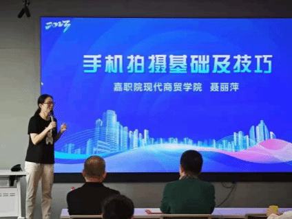 電子商務(wù)專業(yè)聶麗萍老師以圖文并茂的形式以手機(jī)為主體工具,講授了移動(dòng)攝影的拍攝技巧、攝影構(gòu)圖、攝影用光等等方面。并在現(xiàn)場(chǎng)開展了進(jìn)深入淺出的講解和拍攝演示。提高了各社區(qū)工作人員的拍攝技巧,讓他們能夠獨(dú)立完成短視頻拍攝工作