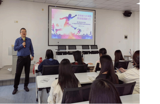 16日上午,浙江雨露空間果品有限公司人力資源徐建總監以《大學生就業與職業規劃》為題做了精彩報告,徐總監結合目前的就業前景和職場需求給同學們提出了學習要求并給出了職業規劃指導。下午,浙江順豐速運有限公司的人力資源經理沈正群針對現代物流行業的高速高質量發展現狀做了詳細的介紹,并在此背景下對大學生提出期許和展望。