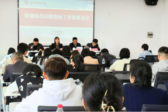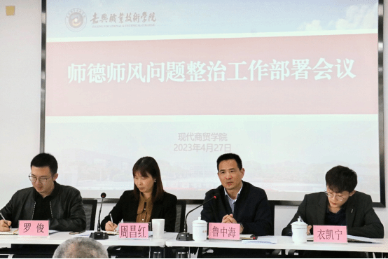 為了全面貫徹黨的二十大精神,以習近平總書記關于加強教師隊伍建設重要論述為根本遵循,聚焦落實師德師風教師評價第一標準要求,大力整治師德師風方面存在的突出問題,強化正向引領,涵養高尚師德,根據學校《中共嘉興職業技術學院委員會師德師風問題整治工作實施方案》要求,現代商貿學院于4月27日召開師德師風問題整治工作動員會,部署下一步師德師風自查自糾、師德師風警示教育等師德師風專題工作。現代商貿學院院長周昌紅主持會議,學校第三督導組成員對師德師風問題整治工作進行現場監督指導。