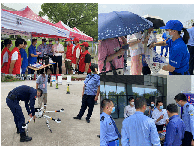 无人机配合宣传志愿者宣讲反诈骗和网络安全知识