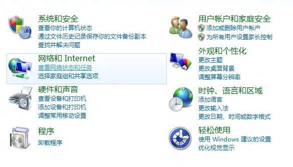 1. 单击“查看网络状态和任务”,进入“网络和共享中心”