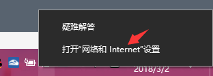 (1)在任务栏右下角网络图标右击,选择“打开网络和Internet设置”;