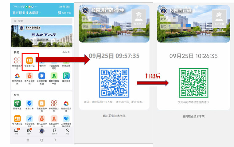 六、报到时出示电子通行证