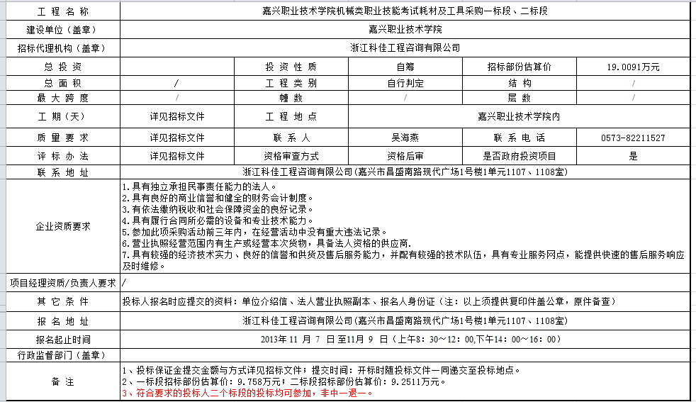 嘉興職業(yè)技術(shù)學(xué)院機(jī)械類職業(yè)技能考試工具采購信息發(fā)布表