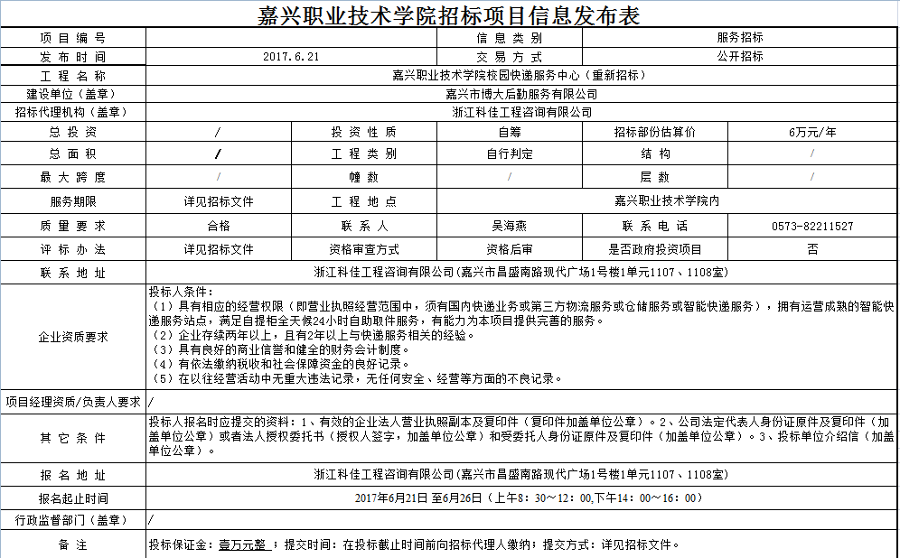 嘉興職業(yè)技術學院校園快遞服務中心招標公告