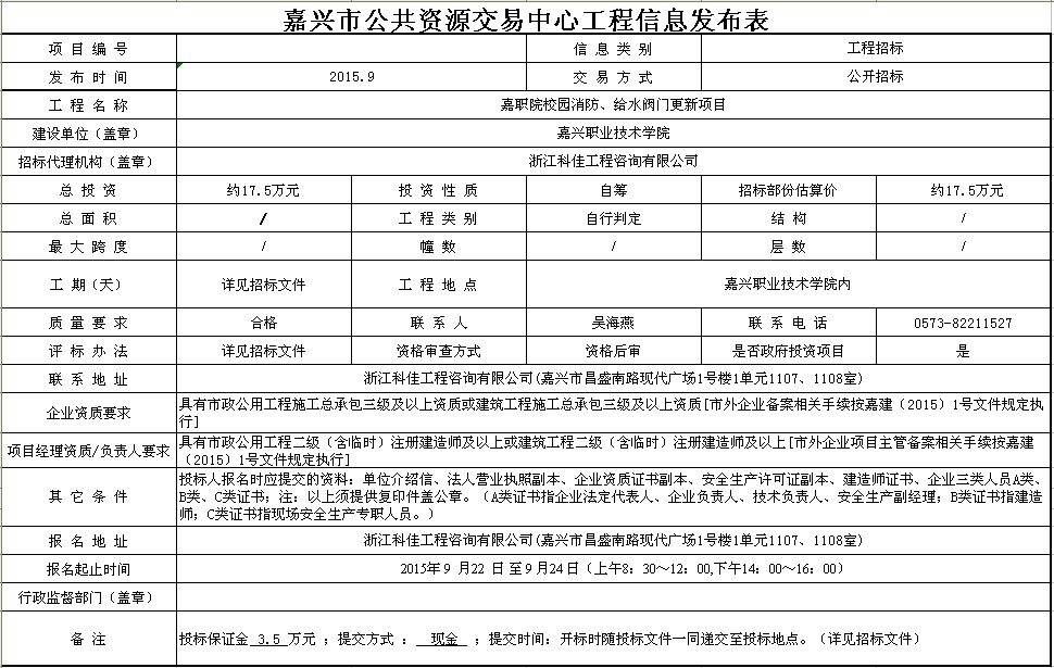 嘉興市公共資源交易中心工程信息發(fā)布表