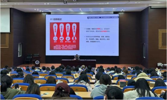 講座伊始,潘維浙以直觀的數據和案例,強調肺結核在全球尤其是我國的嚴峻現狀,讓大家深刻認識到防控的緊迫性。隨后,詳細講解肺結核的致病原理、傳播途徑,點明它主要通過飛沫傳播,像患者咳嗽、打噴嚏時,健康人一旦吸入帶菌飛沫就可能中招。預防措施方面,著重介紹了接種卡介苗、保持室內通風、加強鍛煉、養成良好衛生習慣等要點。講解過程中,還設置了問答環節,大家積極提問,老師耐心解答,老師還貼心地準備了小禮物送給答題同學,現場互動氛圍熱烈。